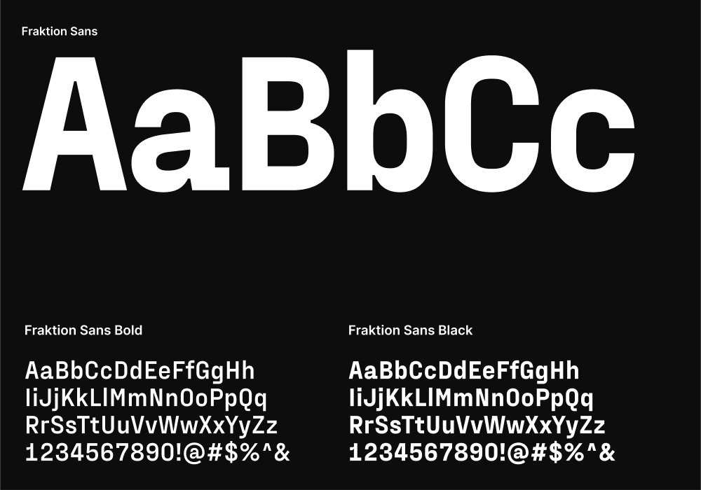 After much deliberation, we landed on Fraktion Sans and Fraktion Mono as our new typefaces. Both have a more industrial, technical feel. With a heritage of physical signage and fine details such as ink traps harkening back to letterpress physical printing, they are rooted in the real world. The letters lend a sense of clarity while maintaining a surprising sense of playfulness. Rigor meets creativity, much like the process of giving your all to your best design.