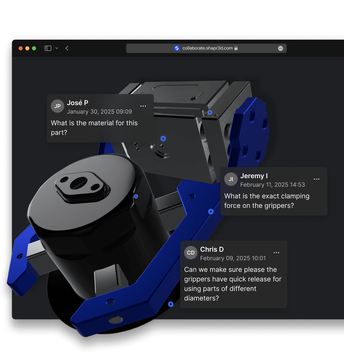 Shapr3D democratizes design across the organization, allowing every team member—not just CAD experts—to actively contribute. When all team members can access, view, and modify designs, collaboration becomes seamless, helping teams align faster, make informed decisions, and produce high-quality products without delays.