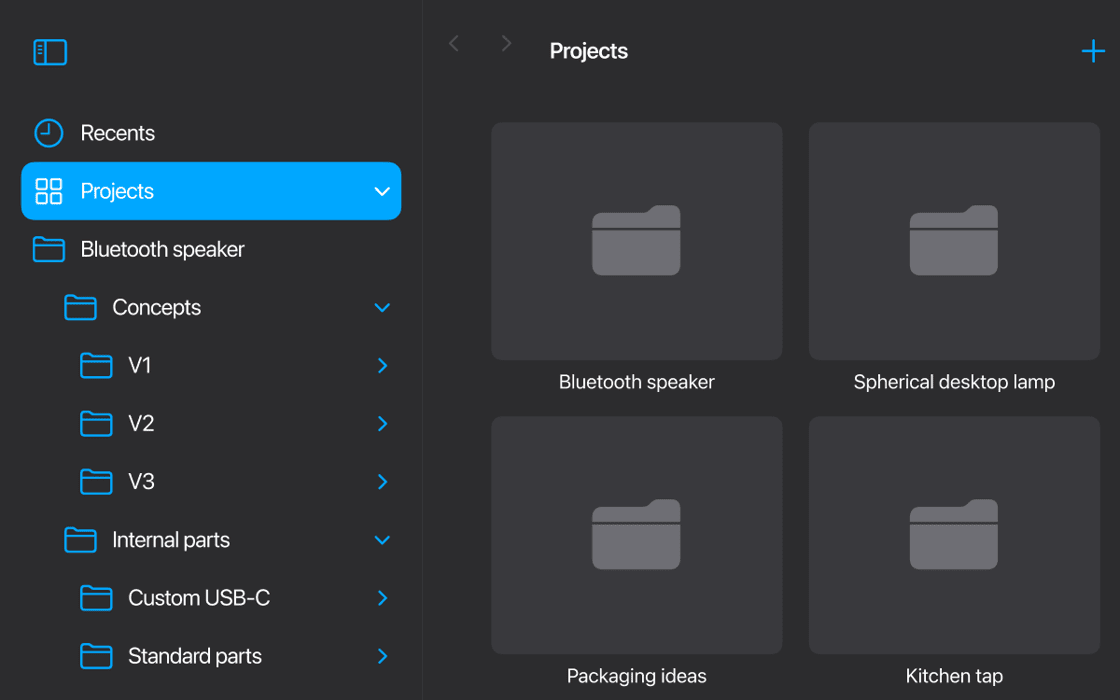 Create folders. Add and move projects into folders. And nest multiple levels of folders. Simply tap on the new sidebar to navigate. Then quickly access any folder or project.