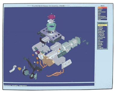 The fact that constraints and dimensions could propagate between parts in an assembly was particularly impressive at the time. If one part had a projection that fit into a slot on another part and the size and shape of the projection changed, the slot would also change when the assembly was regenerated. Although not obvious at the start, another powerful aspect of PTC’s software was that all applications worked off the same database. Within the Pro/ENGINEER suite of software, there was no need to translate model data from one format to another when the user switched applications.