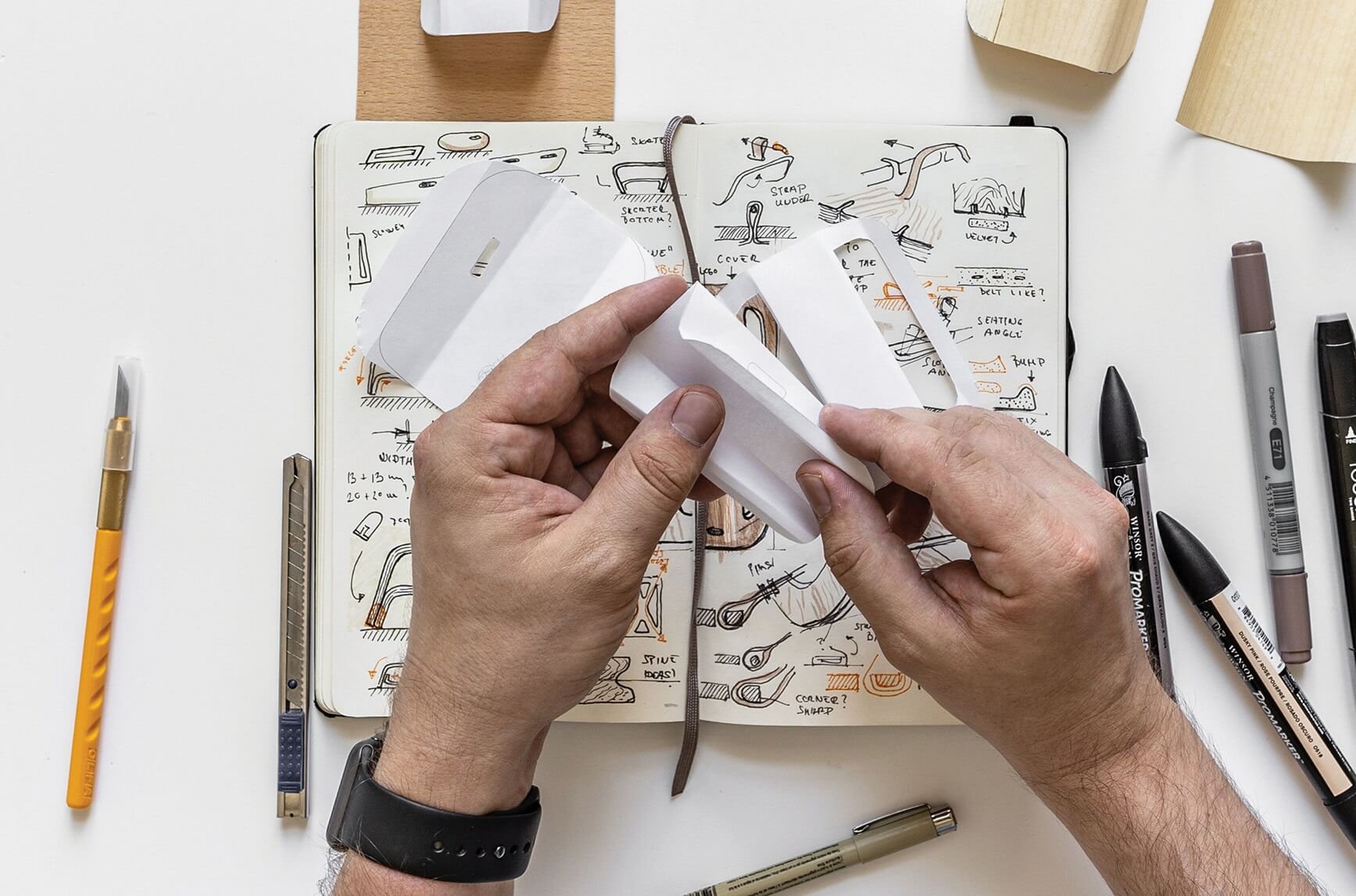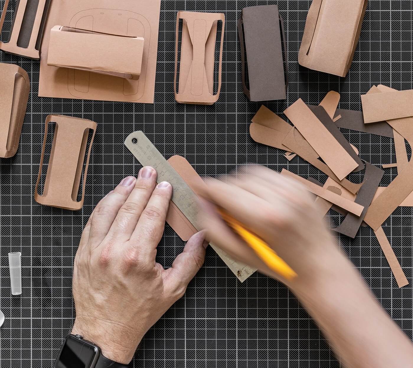 Cardboard 3D prototypes are an even faster and cheaper alternative for refining the product concept. By simply tracing the shape, cutting the contours, folding and pasting the creases, this phase lets you ‘think’ in 3D.