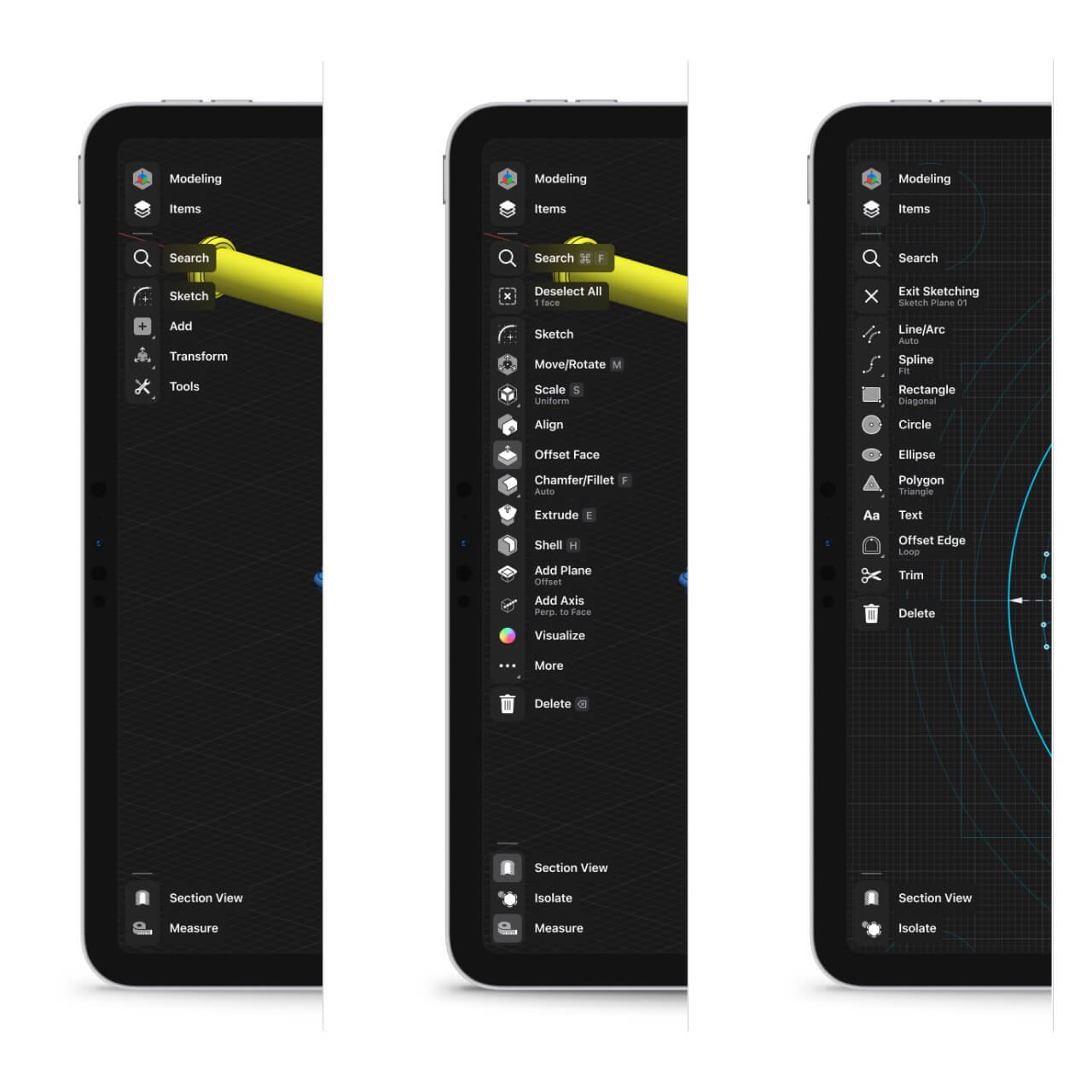 This Adaptive User Interface remains at the core of Shapr3D, and in addition to a visual refresh we have also touched it up to work perfectly across desktops and tablets, and better accommodate the ever increasing tools available within Shapr3D. Additionally, we have reviewed some of the frequently used but previously hidden tools like Section view and Isolate, and moved them to new, prominent places in the Shapr3D toolbar.